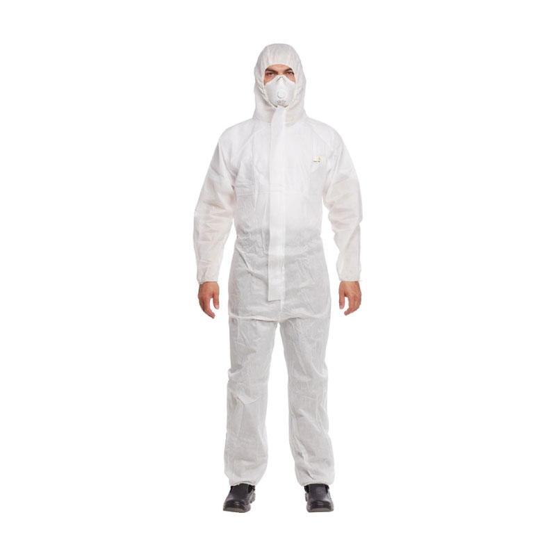 Buzo con capucha elástica. Tipo 5/6. No tejido microporoso laminado. Cierre por cremallera bajo solapa. Elástico de ajuste en la cabeza, en la cintura, las muñecas y en los tobillos. Sólo uso. Embalaje individual. No tejido microporoso laminado 60 g/m².